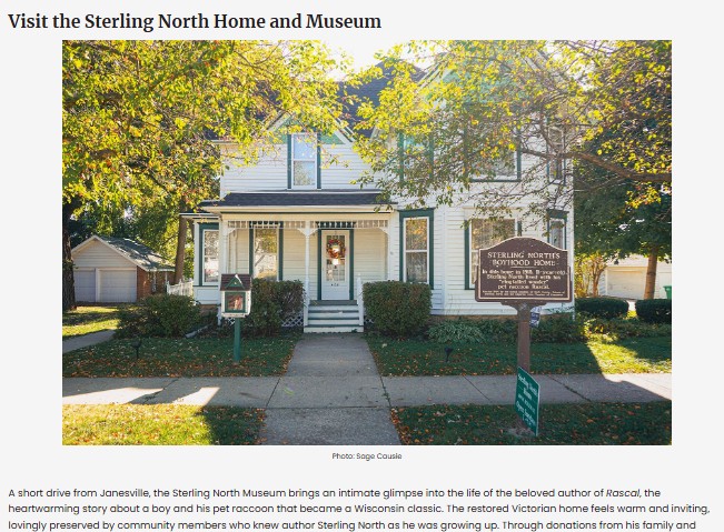 The Sterling North Museum is featured in a October 2025 travel article about nearby Janesville, Wisconsin. California travel writer Sage Causie of the Matador Network made a fall trip to Janesville and Edgerton. They say we’ve had more than 370,000 views already! Her trip was organized through a partnership between the Janesville Area Convention & Visitors Bureau and Travel Wisconsin.